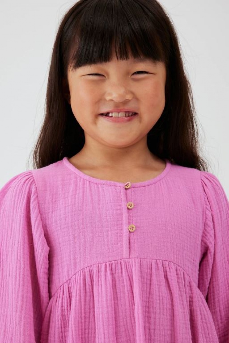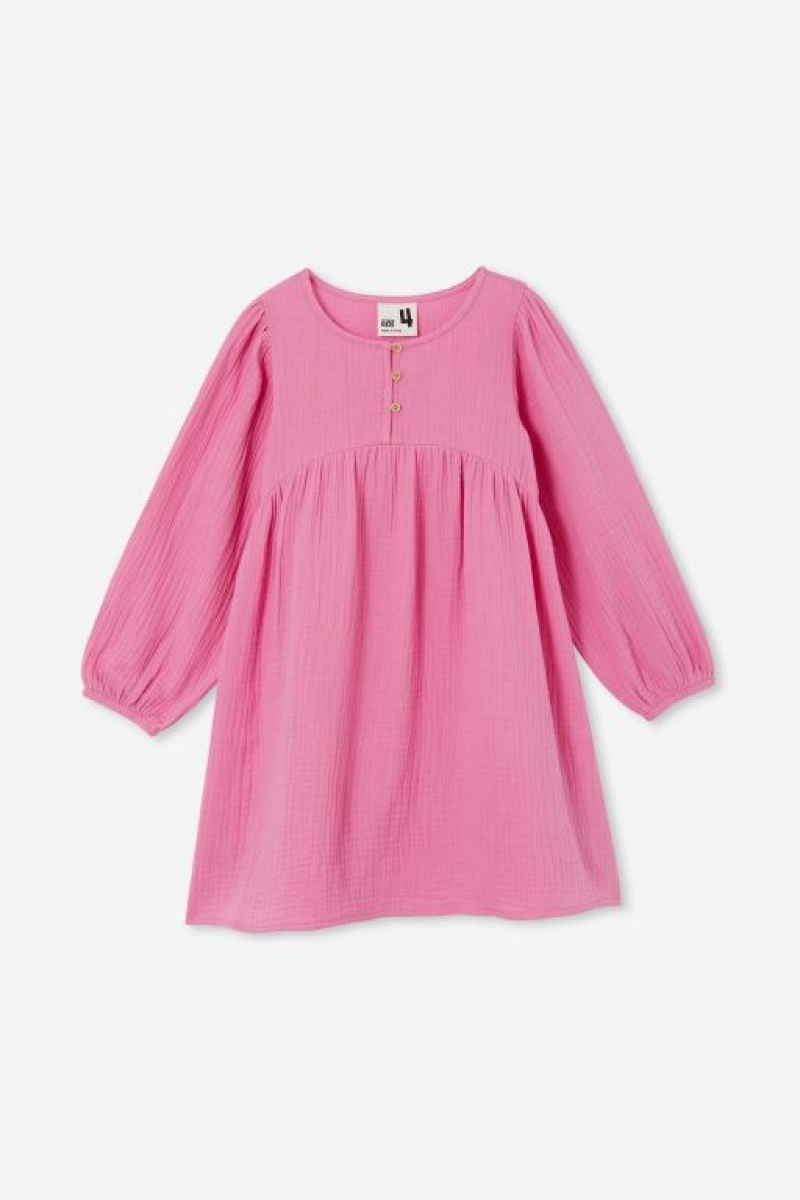Cotton On Bella Long Sleeve Girls' Dress Pink | 767V0qnEIv5