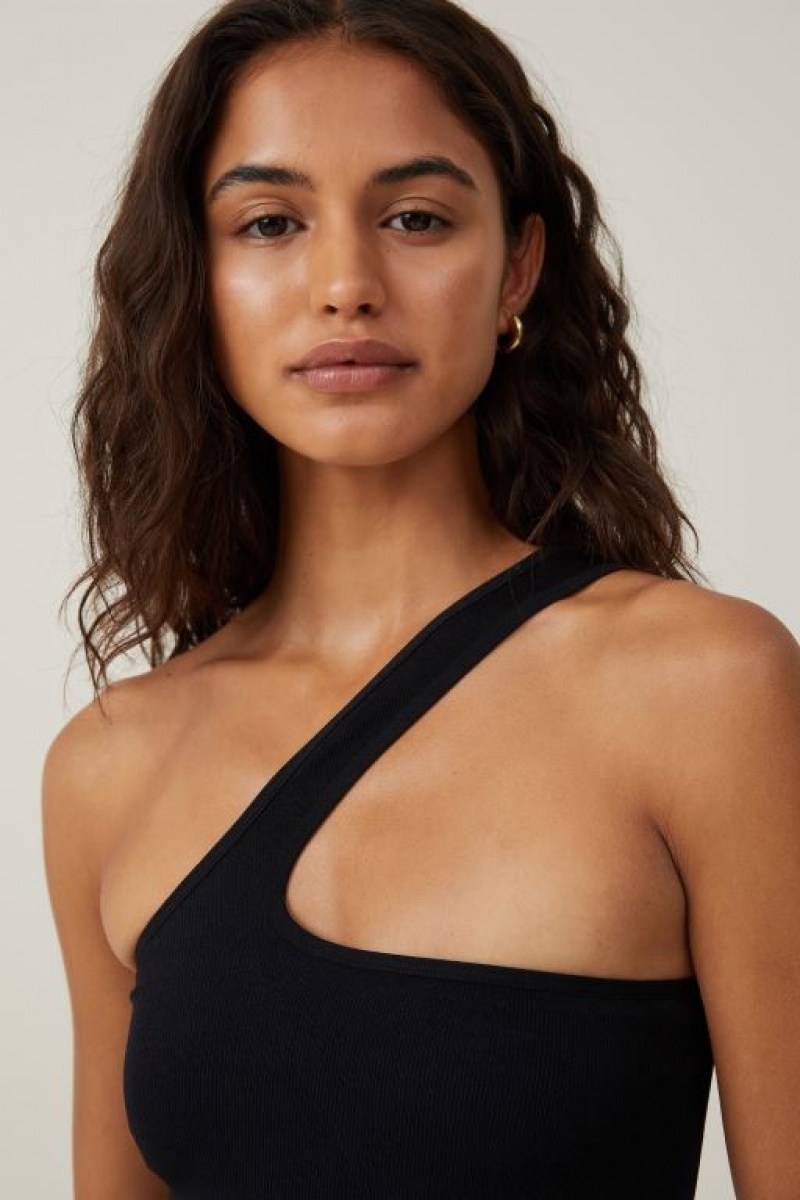 Cotton On Seamless One Shoulder Micro Crop Women's Tanks Black | rmUlkLPYOQ3