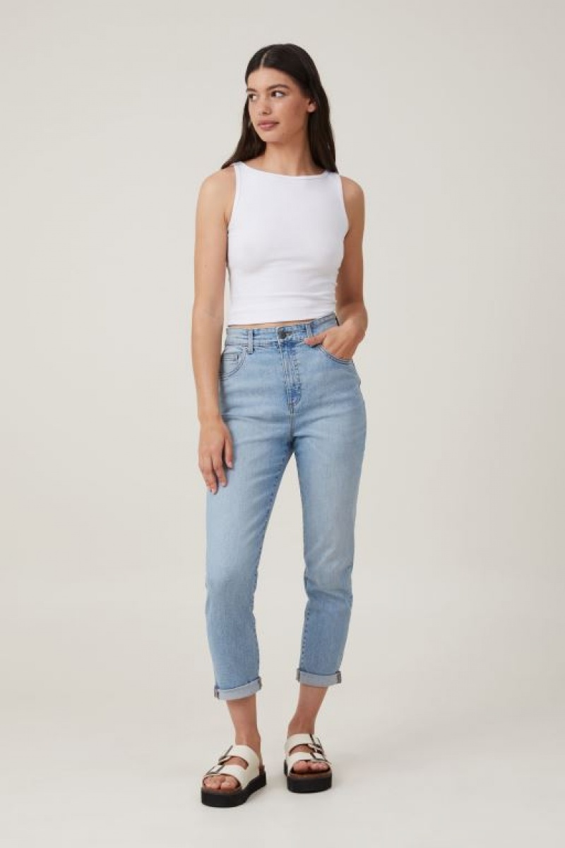 Cotton On Stretch Mom Jean Women's Pants Blue | PXPzvecHxia